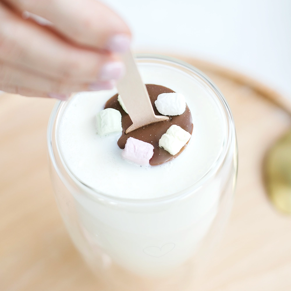 Die Kombination aus Milchschokolade und Marshmallows bildet das perfekte Duo für deine heiße Schokolade! Aufgrund des ausgewogenen Geschmacks von Kakaobohnen, Milch und Marshmallows ist die Trinkschokolade eine süße Köstlichkeit für alle Naschkatzen. Die Trinkschokolade wärmt im Winter nach einem Schneespaziergang oder dient im Sommer als Eis-Trinkschokolade der Abkühlung. In beiden Varianten ist unsere Trinkschokolade mit Mini Marshmallows ein Genuss! Perfekt zu unserer Trinkschokolade passt unser Thermoglas Herz.