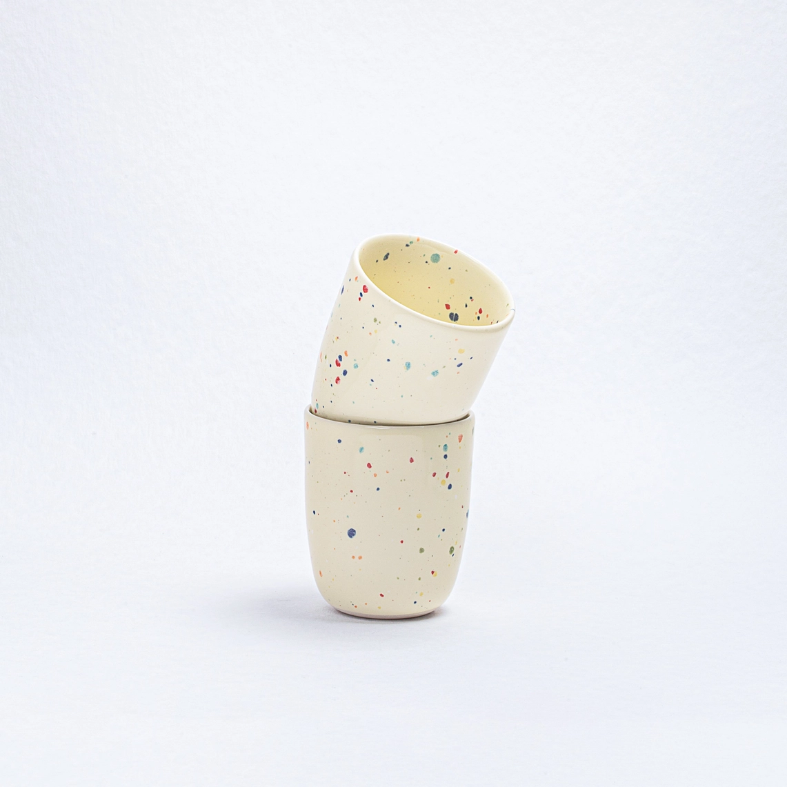 Die Party-Kollektion verfügt über eine spezielle Art von Glasur, die Bereiche aufweisen kann, in denen sich Sprenkel aufgrund der reaktiven Natur des Glases während der Verarbeitung auflösen. Wir finden diese einzigartigen, unvorhersehbaren Variationen als den schönsten Aspekt der Glasur.