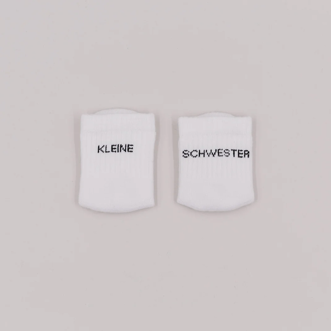 Die Babysocken Kleine Schwester bringen nicht nur kuschelige Wärme, sondern auch eine Extraportion Liebe in den Alltag. Sie sind weich, anschmiegsam und aus hochwertigem Material gefertigt – perfekt für zarte Babyfüße.