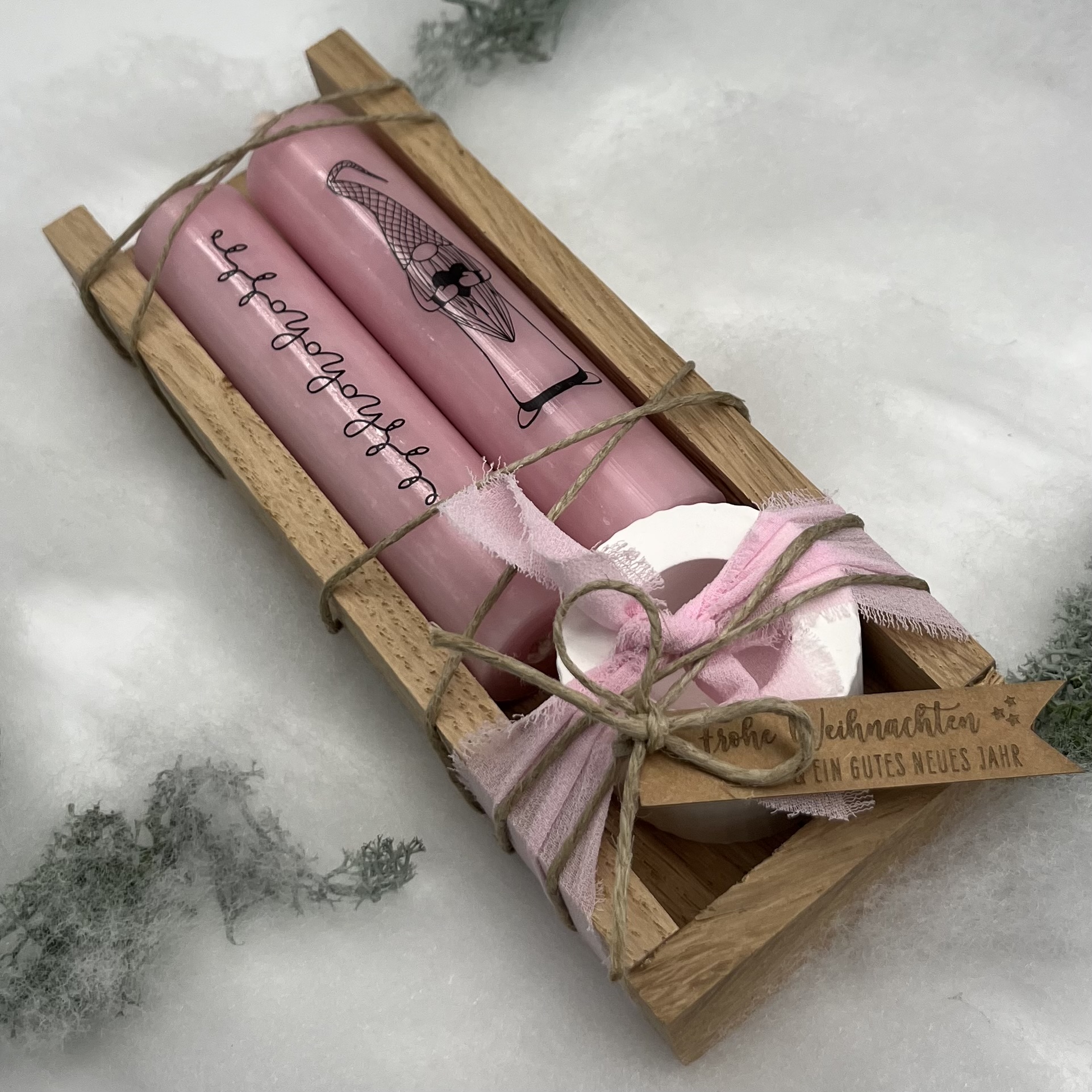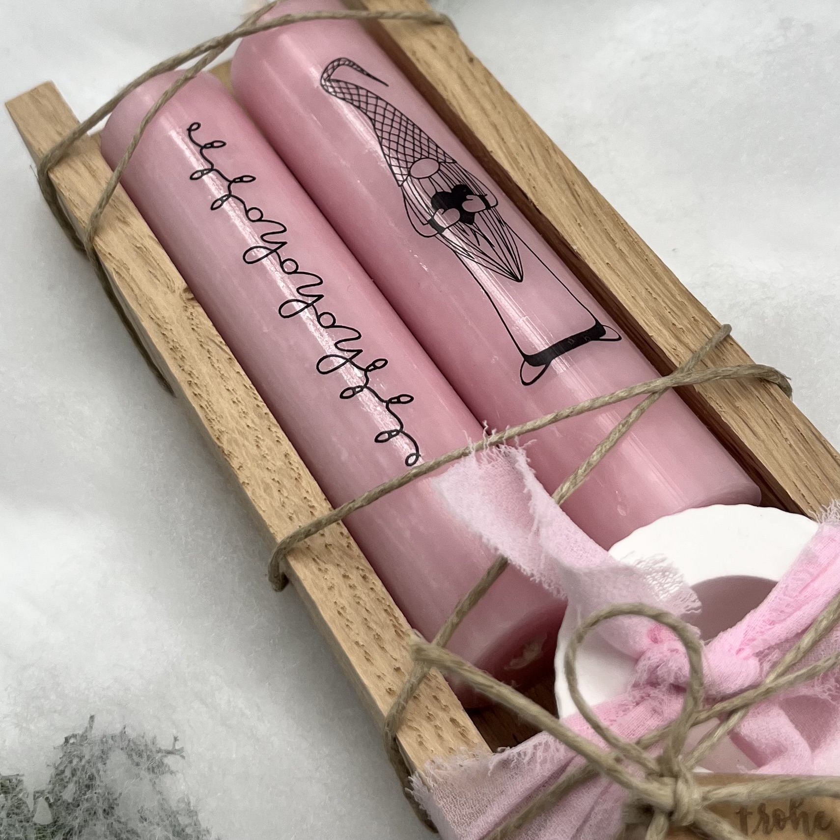 isaMi Weihnachts-Kerzenset «Wichtelgrüsse» – rosa