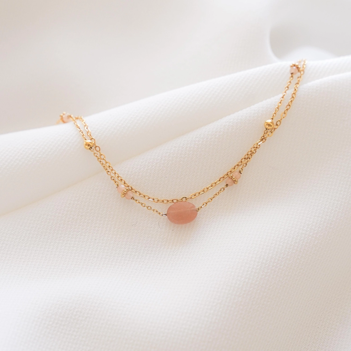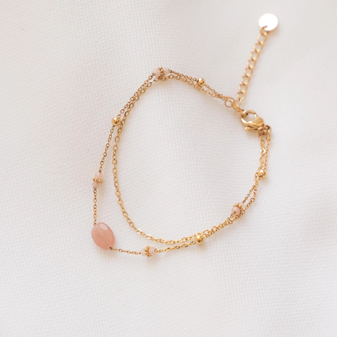 Meora Paris Doppelarmband mit natürlichem Rosenquarzstein