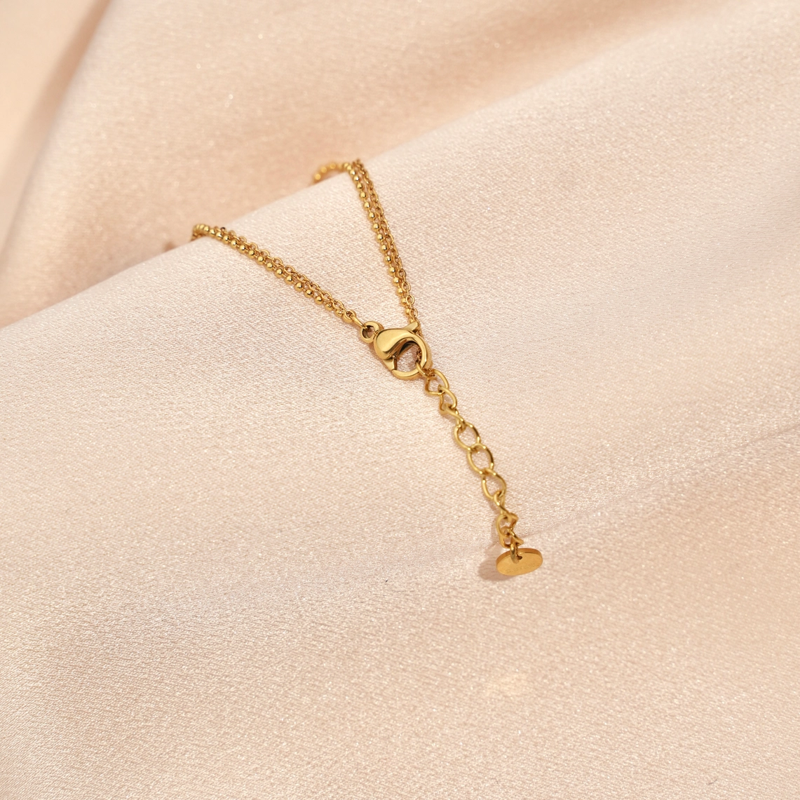 Dieses Armband besteht aus zwei feinen Ketten aus Edelstahl mit einem ovalen Naturstein, der ein Rosenquarz ist. Das Armband hat eine kleine Verstellkette von 3 cm, sodass es sich an die Größe Ihres Handgelenks anpasst. Es ist daher perfekt zum Verschenken. Es passt sehr gut zu anderen kleinen goldenen Armbändern.