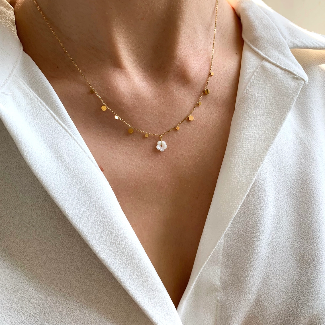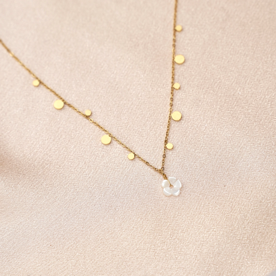 Meora Paris Halskette mit Perlmuttblume & Plättchen