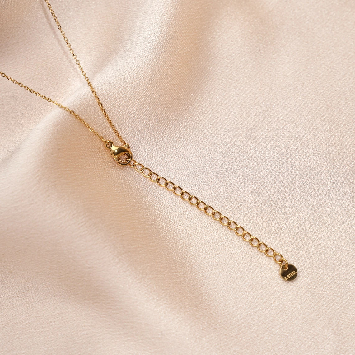 Halskette aus Edelstahl mit einer feinen Kette, die einen kleinen Anhänger aus Perlmutt in Blumenform präsentiert. Sie wird mit einem Karabinerverschluss geschlossen und die Länge ist dank der kleinen 5 cm langen Verlängerungskette verstellbar. Minimalistisch und schick, perfekt zum Verschenken!
