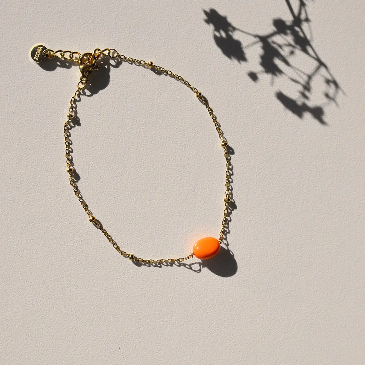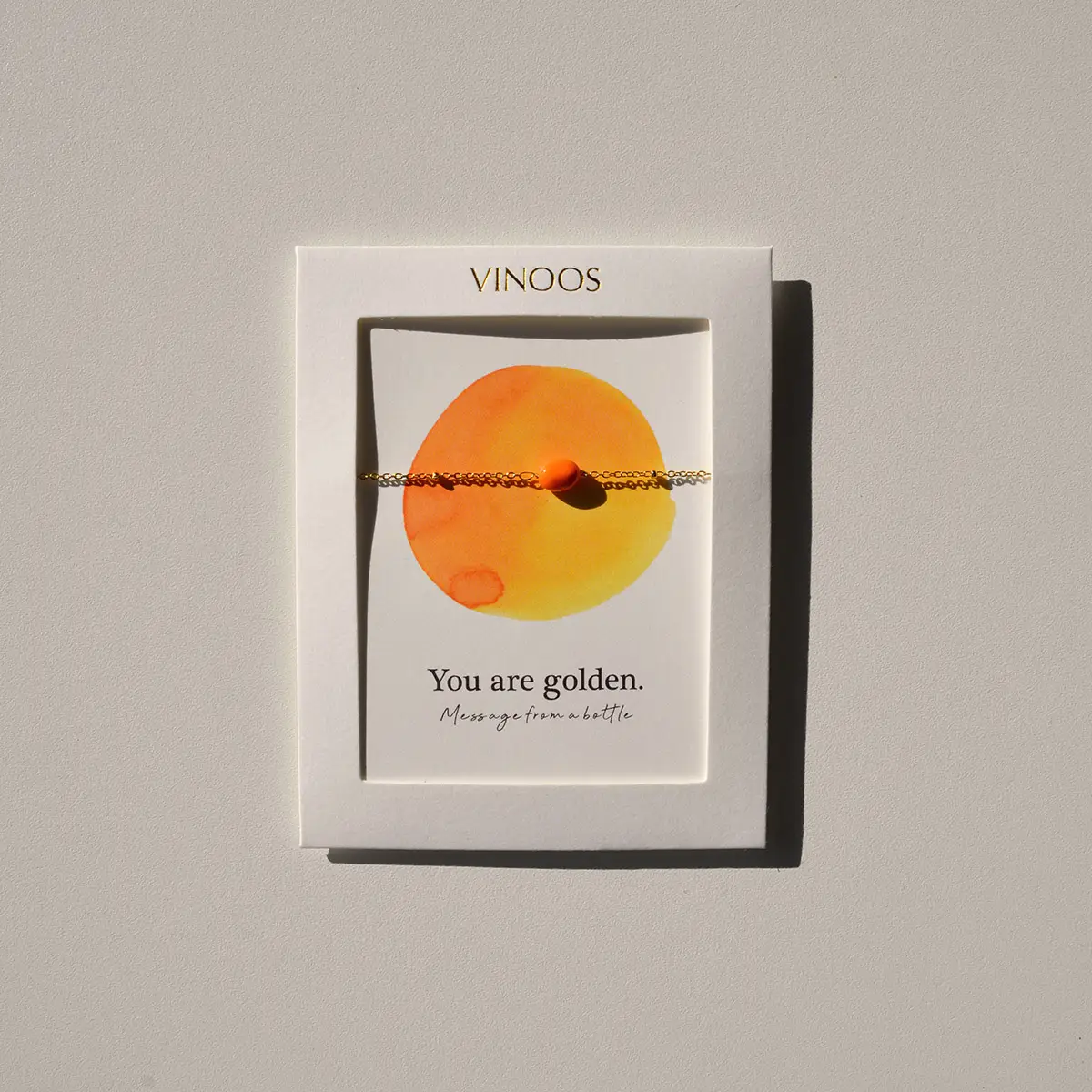 Lass dein Handgelenk strahlen mit diesem Edelstahlarmband mit einer Glaskugel in einem warmen Orangeton – you are golden. Ein besonderes Geschenk, das sogar in den Briefkasten passt. Cheers!