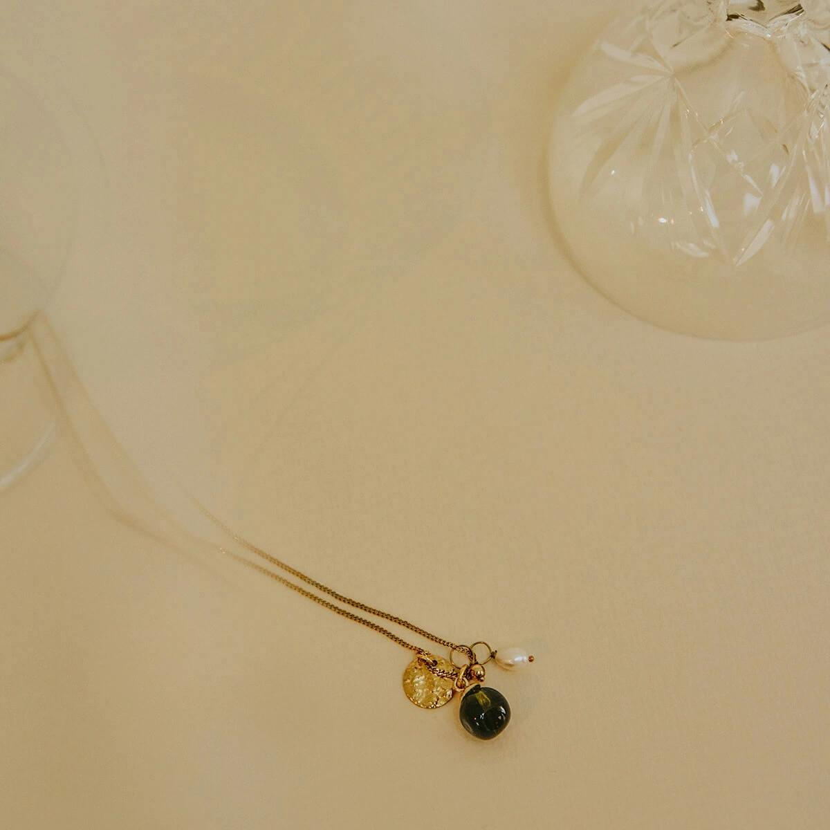 Die Halskette Serenity Charm ist ein dezentes Schmuckstück, das zu Ruhe und Frieden inspiriert. Mit einer grünen Glasperle aus recycelten Weinflaschen und raffinierten Anhängern ist sie das perfekte Accessoire, um einen Moment der Besinnung oder des Friedens einzulegen. Ein wunderbares Geschenk für Sie selbst oder für jemanden, der etwas mehr innere Gelassenheit gebrauchen könnte!