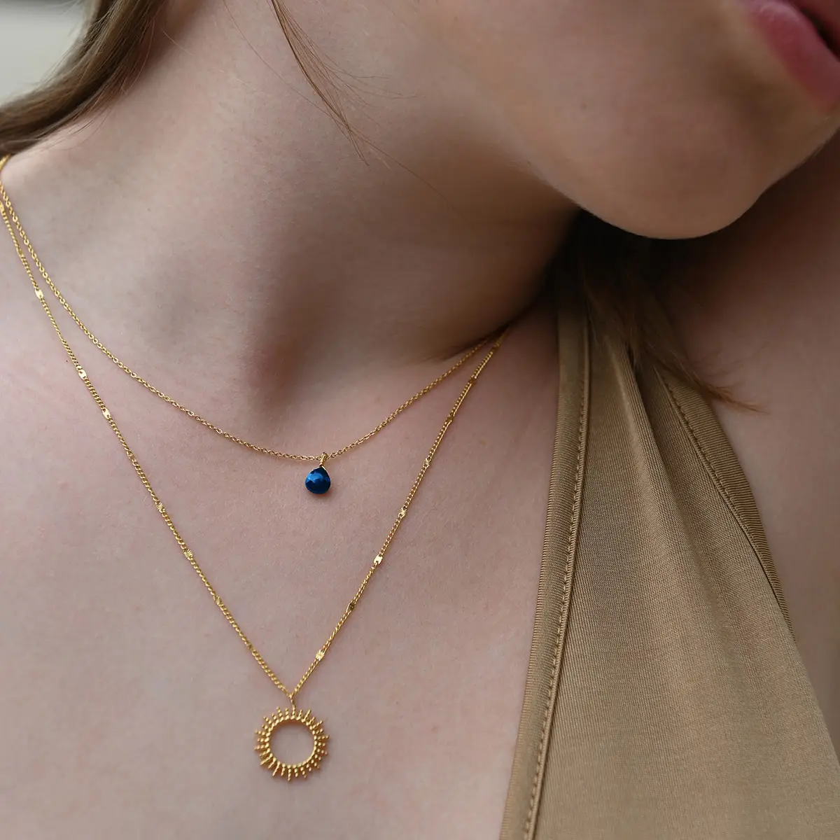 Feiere deine einzigartigen Momente mit dieser eleganten Sonnenkette mit blauer Glasperle. Der sonnenförmige Anhänger steht für Energie, Klarheit und positive Kraft, während die tiefblaue Perle Ruhe und Inspiration ausstrahlt. Die Botschaft „Your Moment” erinnert dich daran, jeden Moment des Erfolgs, des Glücks oder der Selbstfürsorge zu geniessen.
